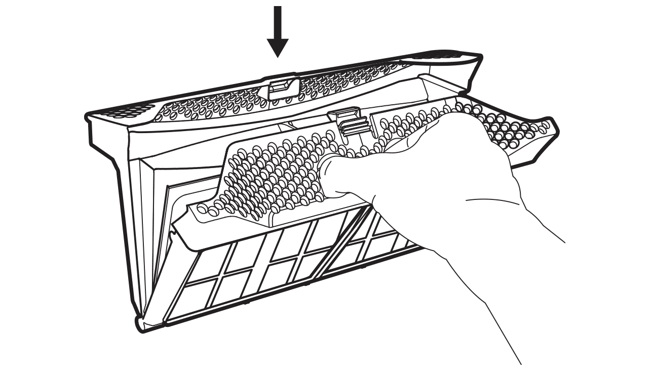 1. Отворете вратата и издърпайте филтъра нагоре.
