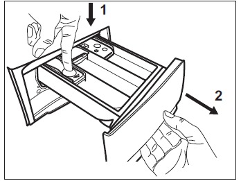 1. Извадете касетата за дозиране на перилните препарати, като я изтеглите докрай